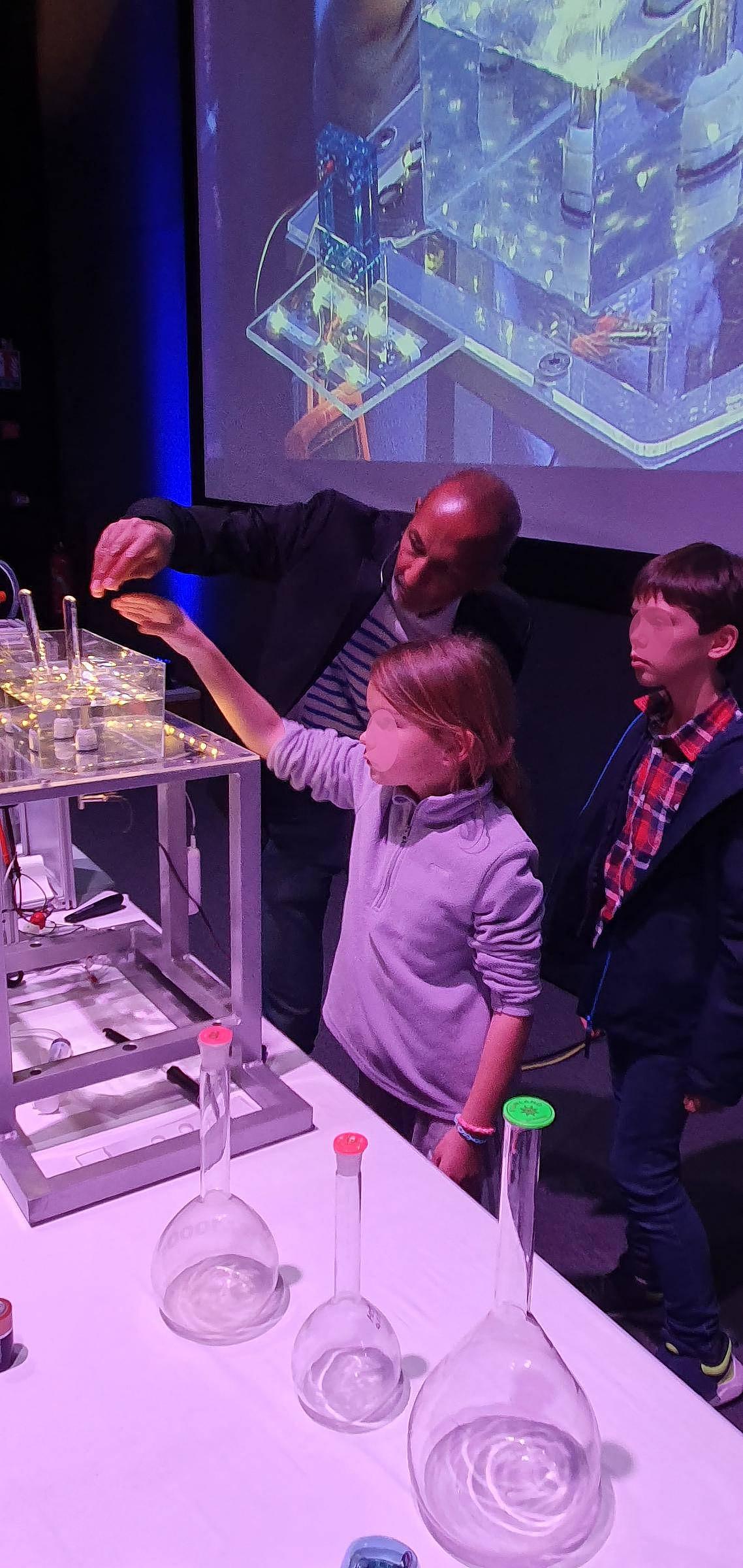 Intitulée « De l’eau à l’énergie : plongez au cœur des solutions renouvelables », cette Animaconf a révélé les secrets de l’énergie cachée derrière l’eau et le vent, deux éléments essentiels à la décarbonation de notre planète. Au programme : électrolyse de l’eau, pile à combustible, voiture à hydrogène et expériences spectaculaires sur la pression, la thermodynamique et les forces.