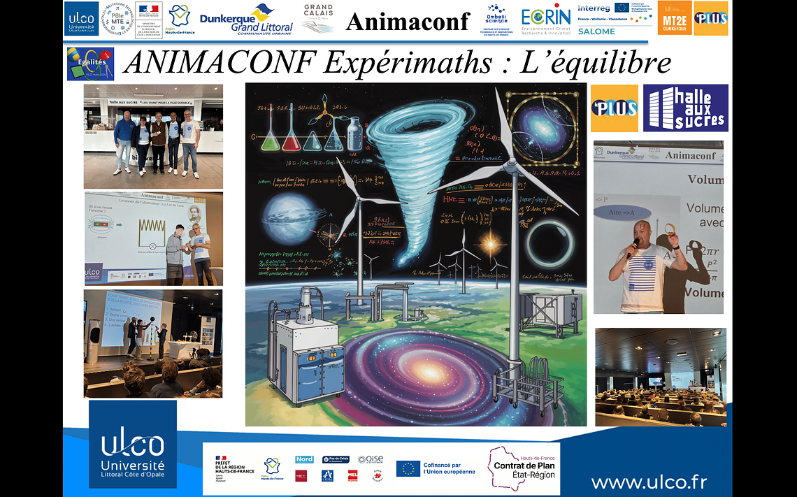 Dans le cadre de la 15ᵉ édition de la Semaine des mathématiques, le Palais de l’Univers et des Sciences de la Communauté Urbaine de Dunkerque (CUD) a organisé, en partenariat avec la Halle aux Sucres et le Pôle de Recherche Mutations Technologiques et Environnementales (MTE) de l’Université du Littoral Côte d’Opale (ULCO), une Animaconf itinérante consacrée au thème de l’équilibre.