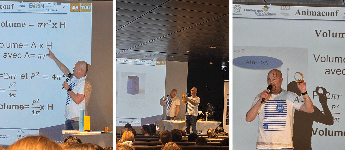 Cet événement, qui s’est déroulé le vendredi 13 mars 2026, à la veille du Pi Day, a réuni plus de 120 participants dans l’auditorium de la Halle aux Sucres entre 14 h et 15 h 30. La majorité du public était composée d’élèves de 4ᵉ et de 3ᵉ des collèges Guilleminot et Westhoek, venus découvrir une image vivante, actuelle et attractive des mathématiques à travers une Animaconf spectaculaire mêlant expériences scientifiques, démonstrations mathématiques et participation du public.