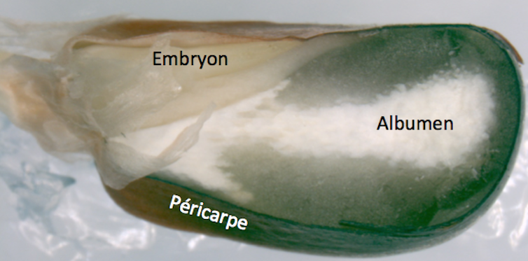 • l’albumen principalement composé de grains d’amidons et d’eau ;