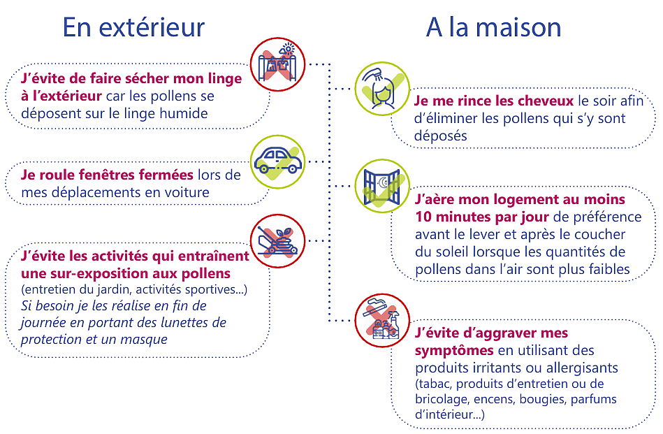 Pour les personnes sensibles, plusieurs gestes simples permettent de réduire l'exposition et les symptômes. ­