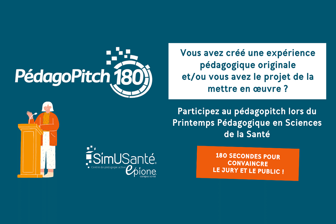 Le PédagoPitch est une expérience de présentation courte et dynamique visant à valoriser des initiatives pédagogiques originales, lors du Printemps Pédagogique en Sciences de la Santé (P2S2), qui aura lieu le jeudi 19 mars 2026.