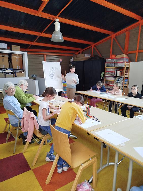 Pour la première séance, j'ai expliqué mon métier d'illustratrice naturaliste et ma technique de dessin. Nous avons fait quelques exercices de dessin pour nous entraîner avant de passer à une réalisation plus détaillée.
