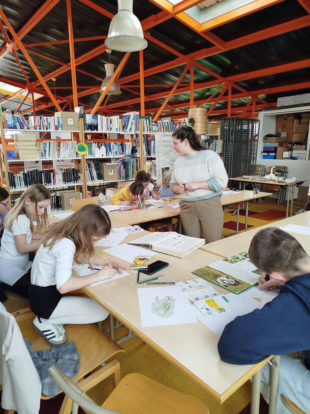 En mars et avril, j'ai animé 3 ateliers de dessin naturaliste, dont un en binôme avec Pauline Delattre de Picardie Nature, pour un groupe mixte de 12 personnes à la médiathèque de Beaucamps-le-Vieux.