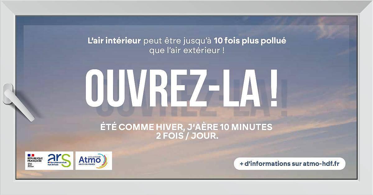 L' Agence Régionale de Santé et Atmo Hauts-de-France lancent une campagne de communication sur l'air intérieur baptisée "Ouvrez-la ! "L’objectif : rappeler que l’air que nous respirons à la maison, à l’école ou au travail peut être jusqu’à 10 fois plus pollué que l’air extérieur, et qu’il existe des gestes simples pour mieux protéger notre santé.