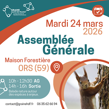 Le Conseil d'Administration du GRAINE Hauts-de-France vous invite à participer à son Assemblée Générale qui aura lieu le 24 mars 2026 à la Maison Forestière d'Ors.