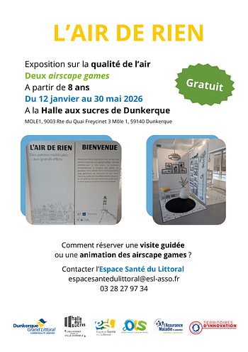 Créée par l’OLS, l’exposition est présentée à la Halle aux Sucres à Dunkerque jusqu’au 30 mai 2026. Elle propose de mieux comprendre la qualité de l’air : sa composition, son évolution ainsi que ses impacts sur la santé et l’environnement.