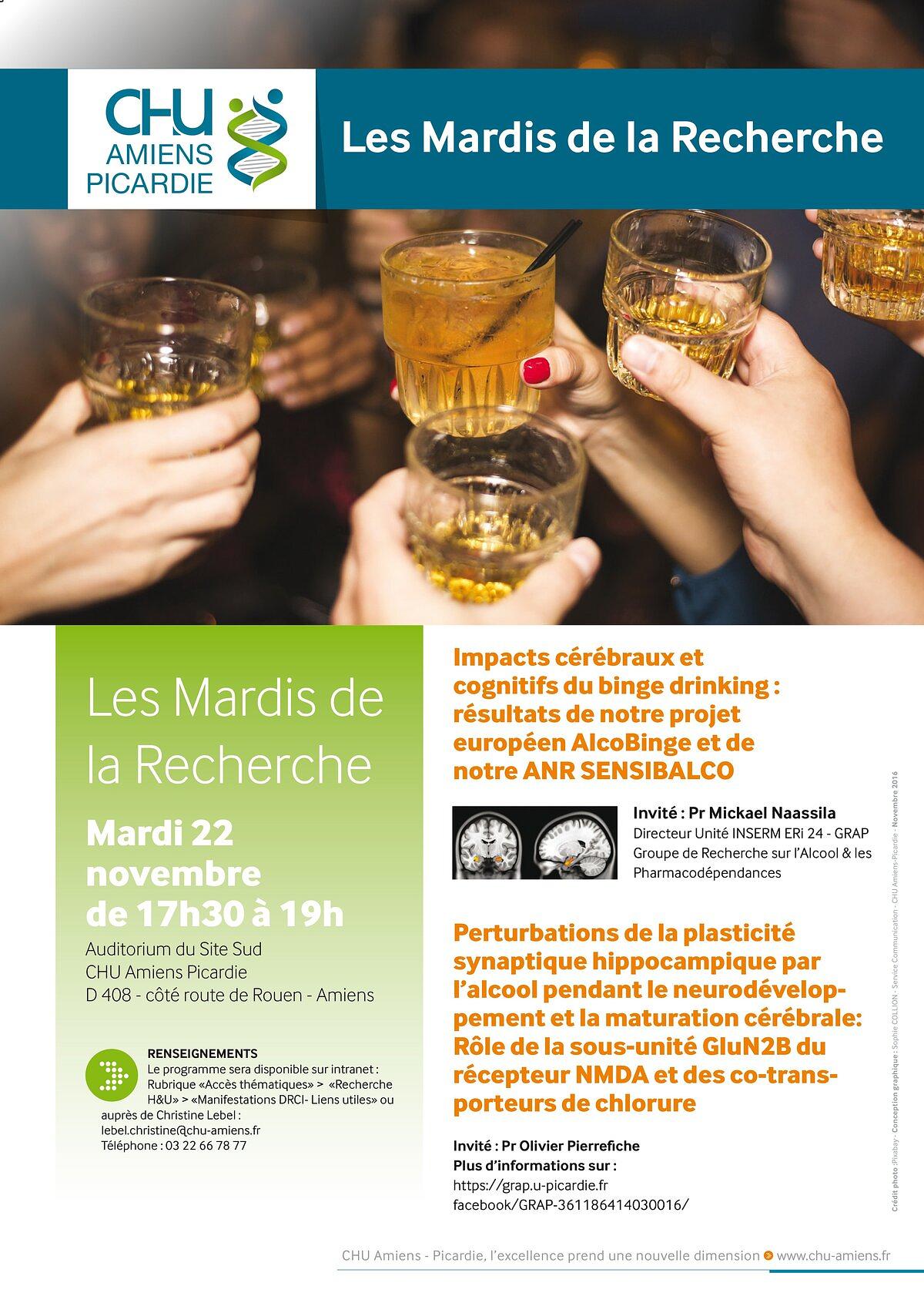 Le prochain mardi, le 22 novembre, les chercheurs s'intéresseront à expliquer l'effet de la consommation d'alcool, et plus particulièrement du binge drinking, sur le cerveau.