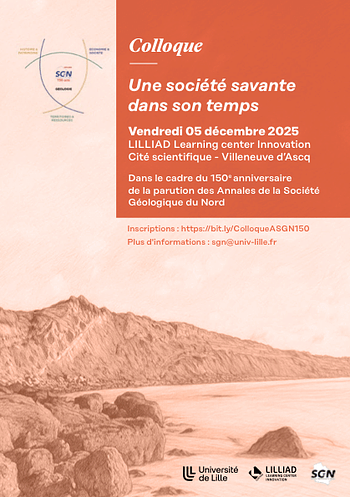 Dans le cadre du 150e anniversaire de la parution des Annales de la Société Géologique du Nord (ASGN), la SGN organise le vendredi 5 décembre 2025 au LILLIAD Learning center Innovation (Cité scientifique - Villeneuve d’Ascq) un colloque intitulé « Une société savante dans son temps ».